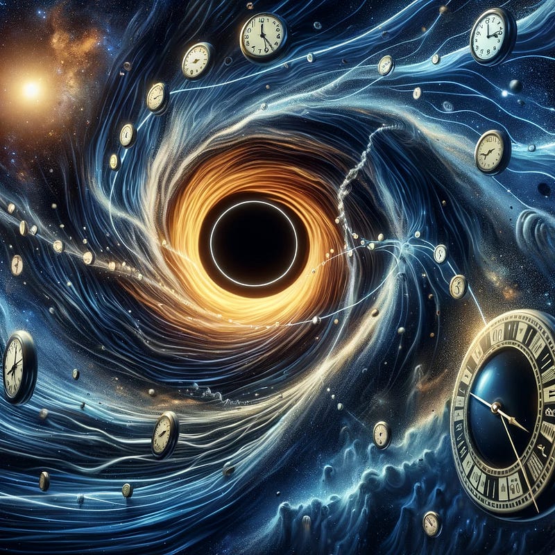 Inside a black hole, time itself could dance to a different tune, winding backward or sideways, rendering them hidden from our visual perception — reversed back to a time before time was time, before the Big Bang some 14 billion years ago — 14 billion nothings ago — ago — o... you get the point.