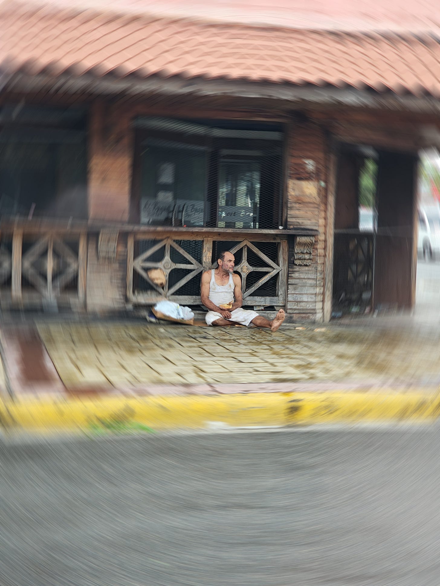 As we drove away, the image of the man by the bar remained with me, a silent echo in the confines of the moving car. It stirred within me a deep reflection on the nature of existence, on the arbitrary lines drawn between fortune and hardship.